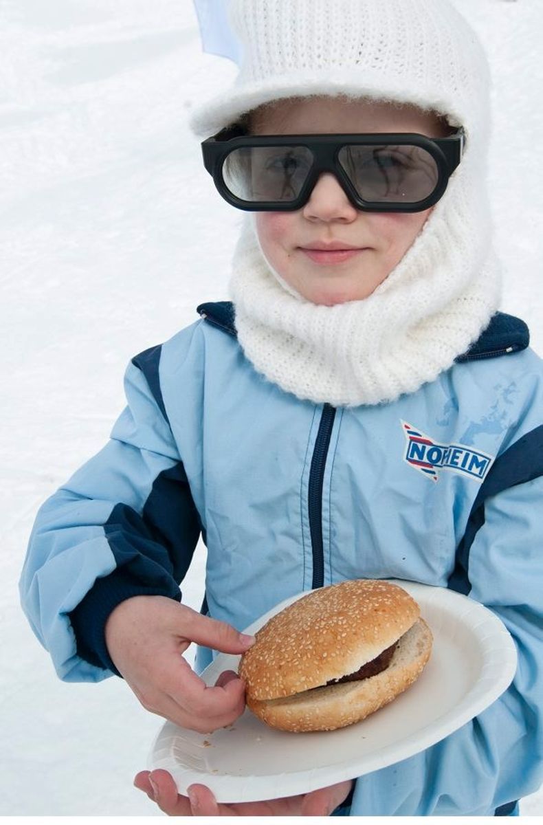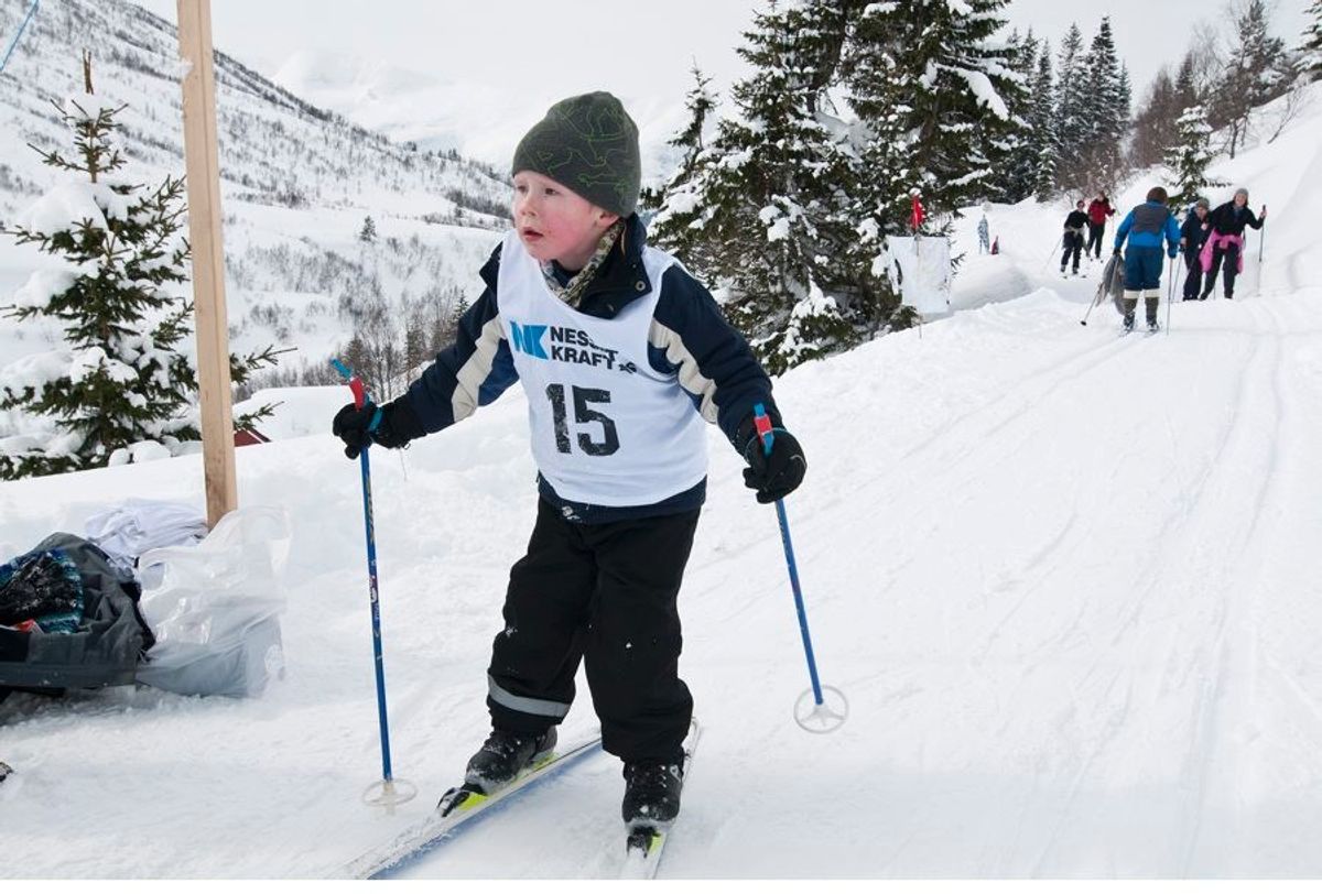 Vårsol 4H i Eresfjord hadde laga til både hoppbakke, slalåmløype, akebakke og rundløype med skiskyting. Så her leika og boltra barna seg i stor fryd.